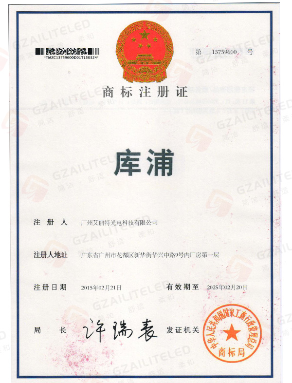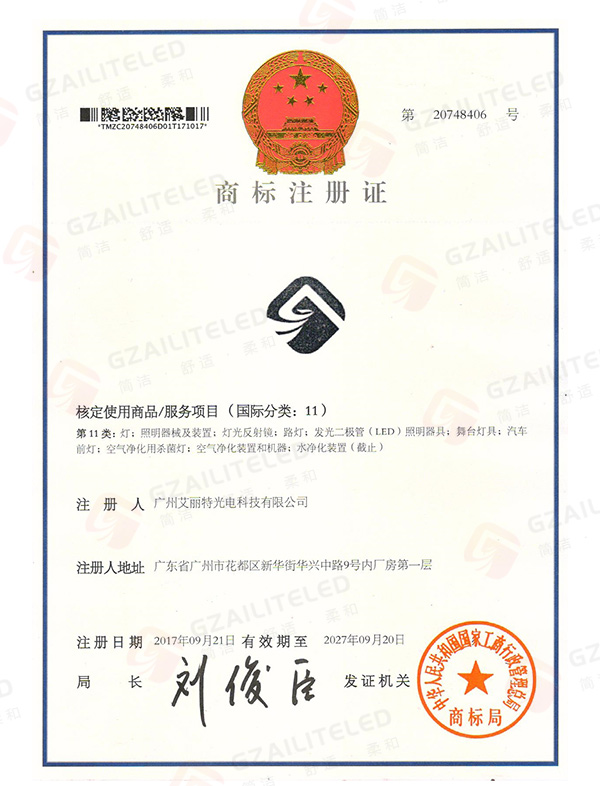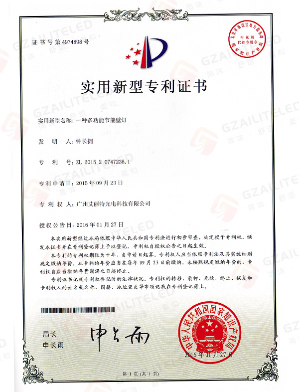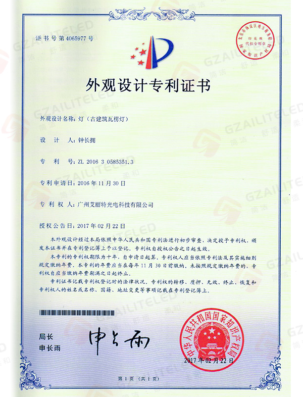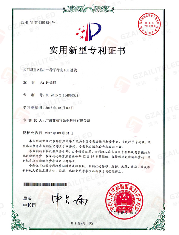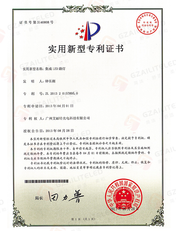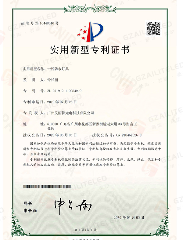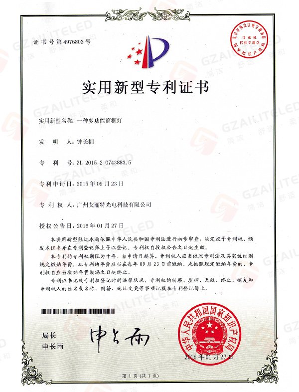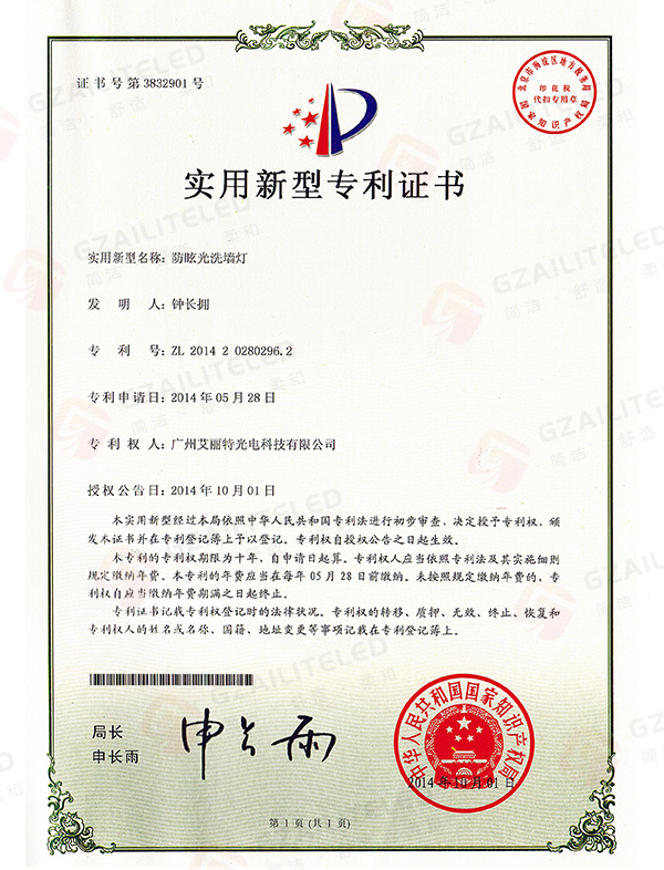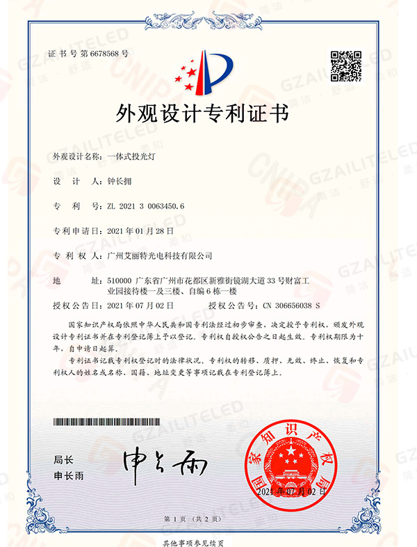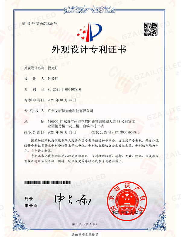 线型光LED射灯专利登记簿