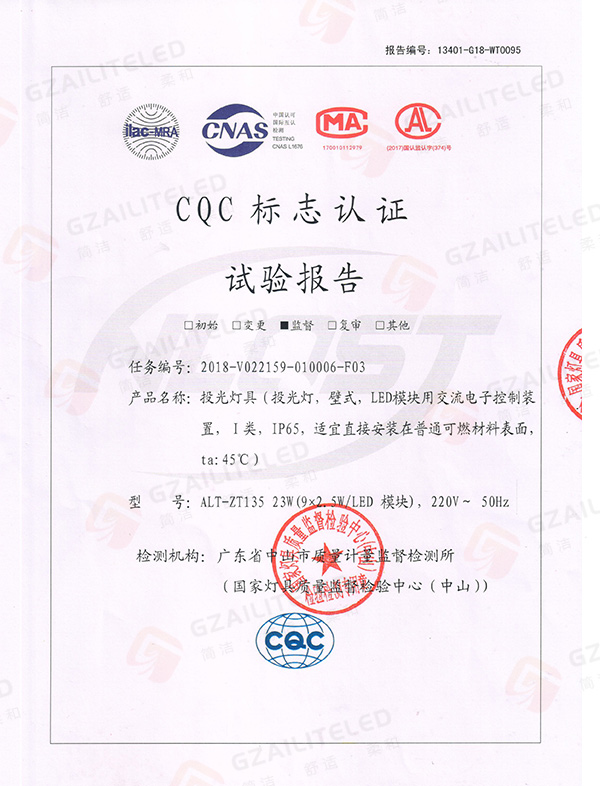 CQC标志认证试验报告